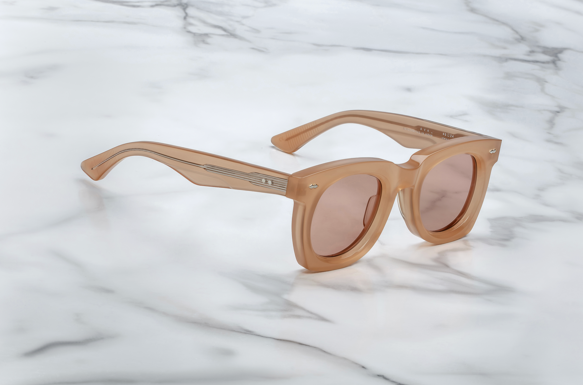 MATERIAL: 8mm block acetate with custom double laminated acetate temples ft. precious sterling silver hardware