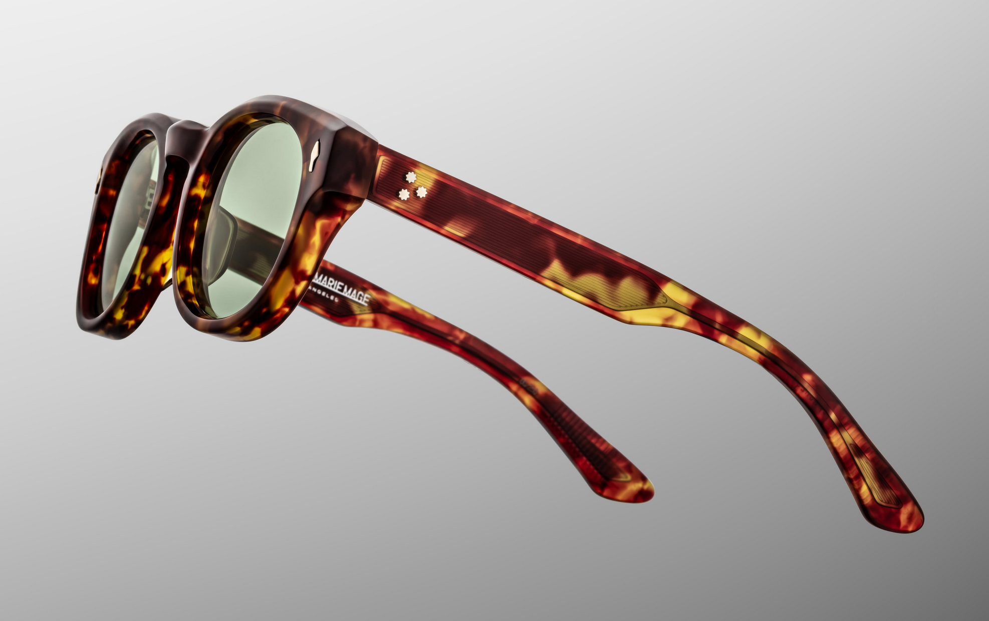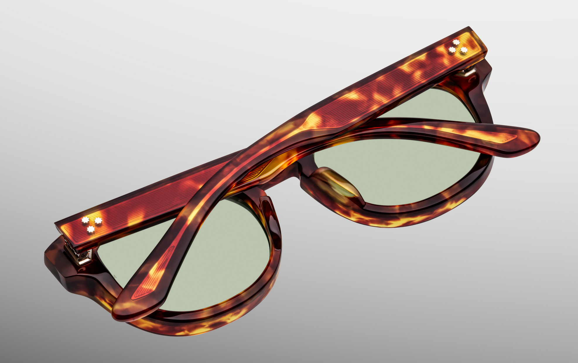 MATERIAL: 10 mm block acetate with custom double laminated acetate temples ft. precious sterling silver hardware
