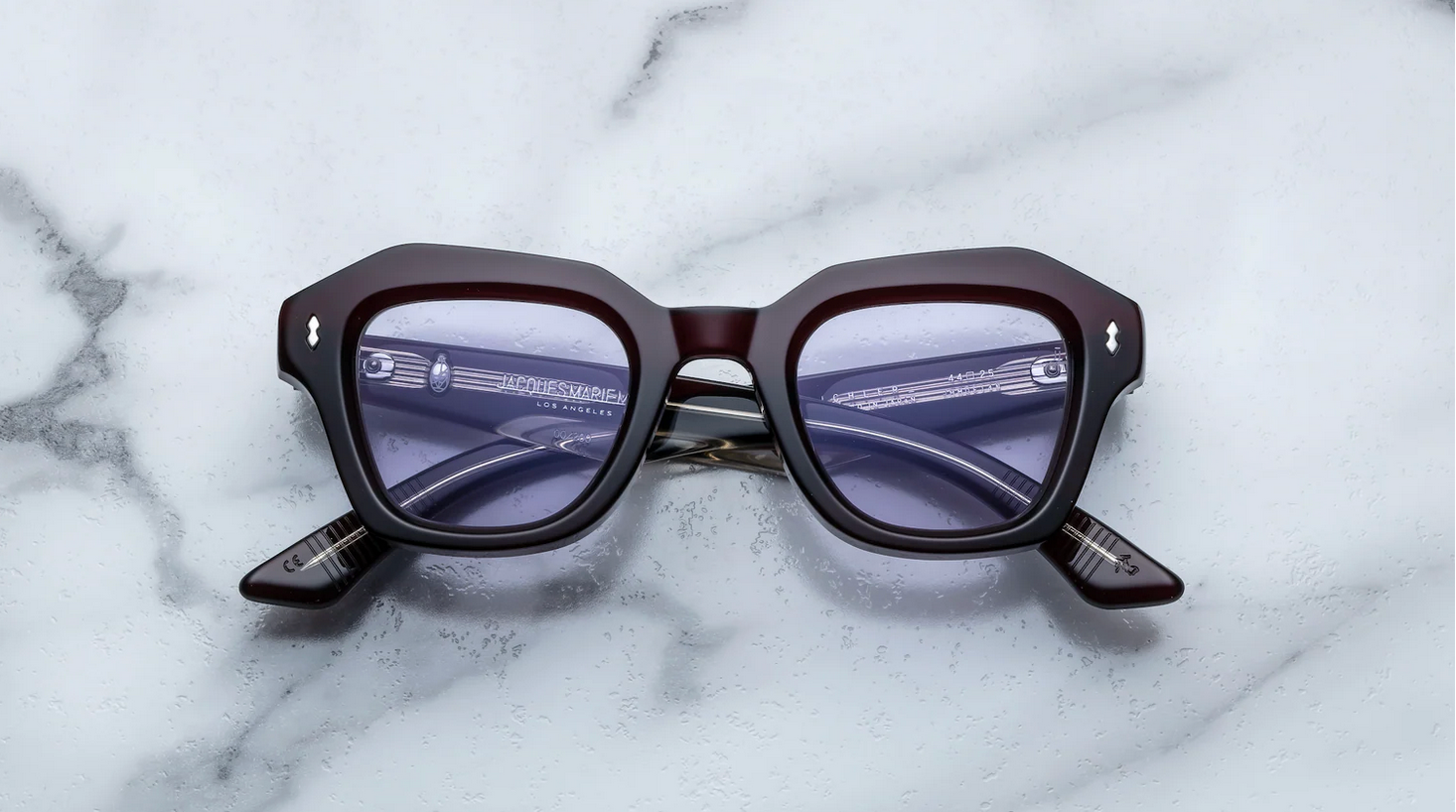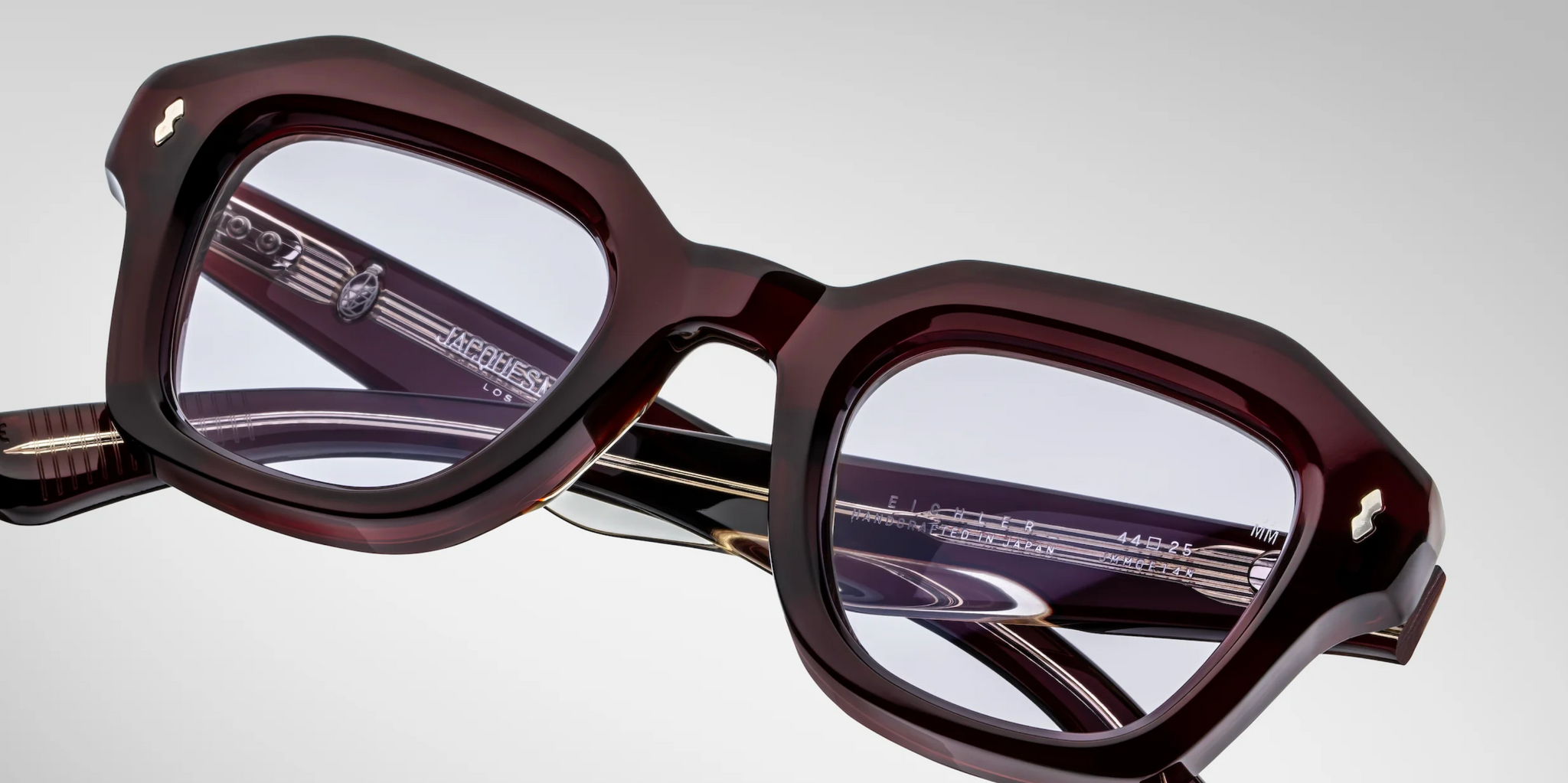 MATERIAL: 10 mm block acetate with custom double laminated acetate temples ft. precious sterling silver hardware