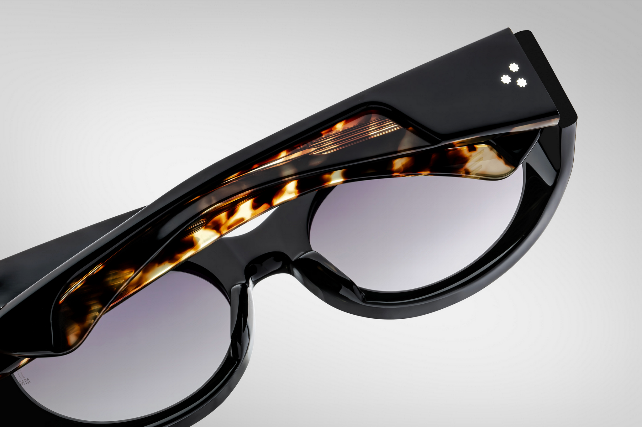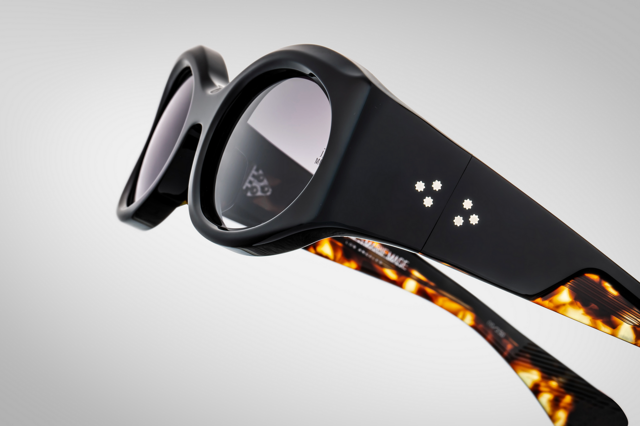 MATERIAL: 10 mm block acetate with custom double laminated acetate temples ft. precious sterling silver hardware