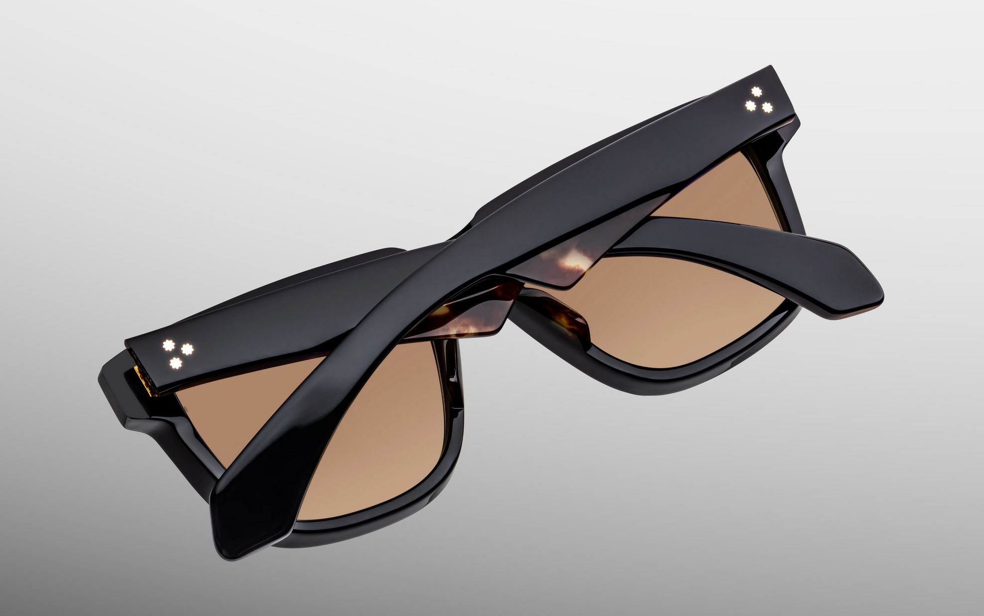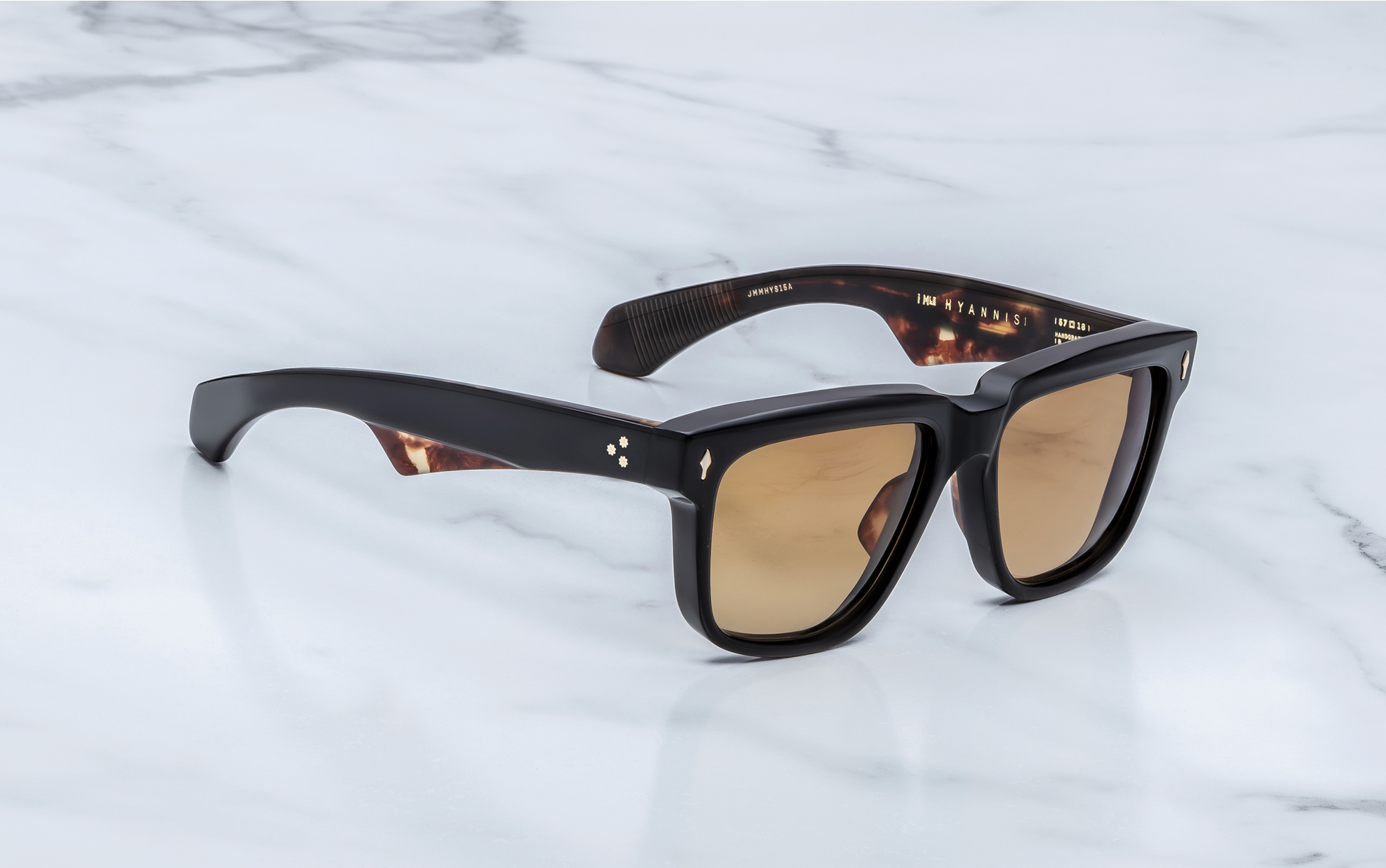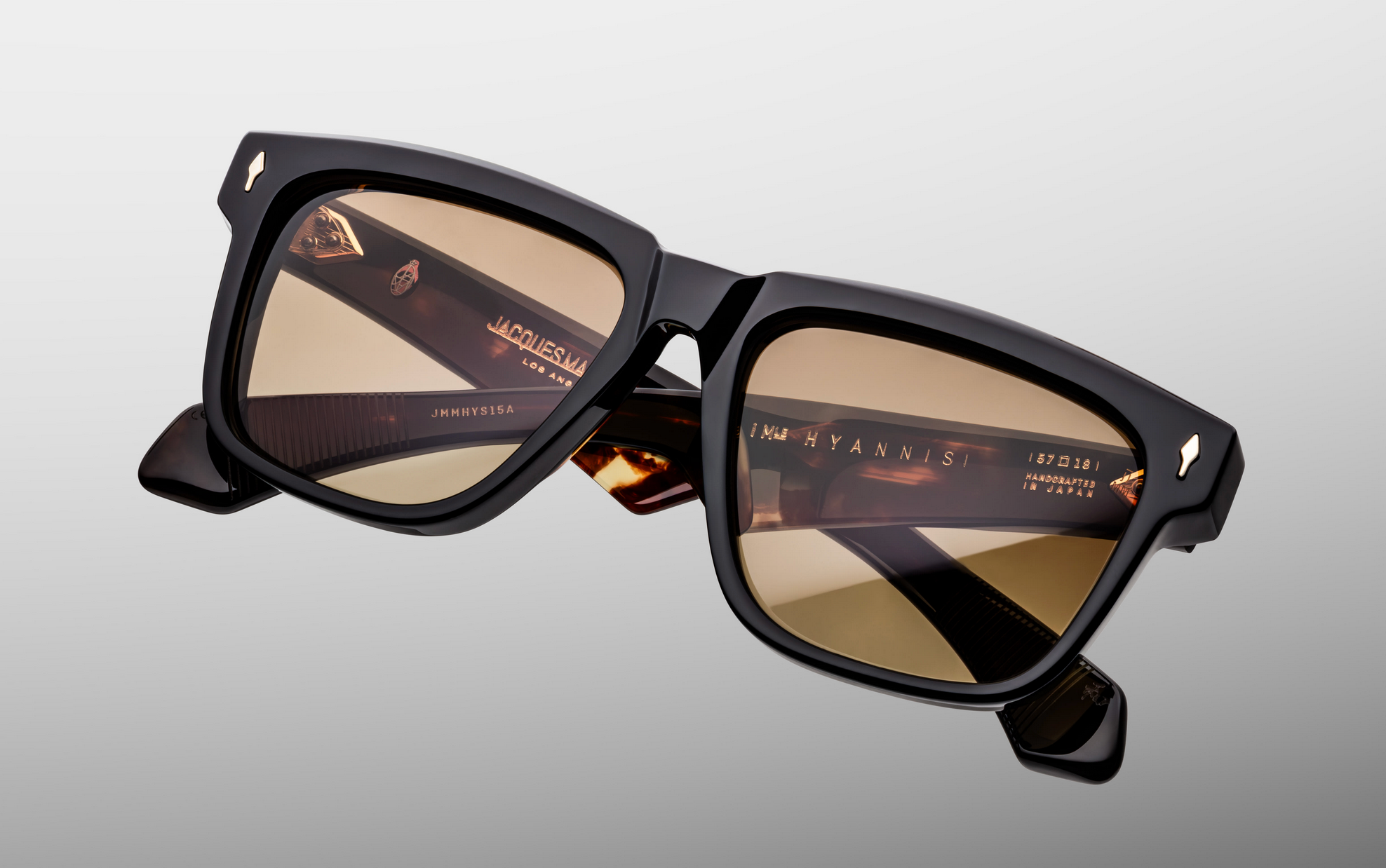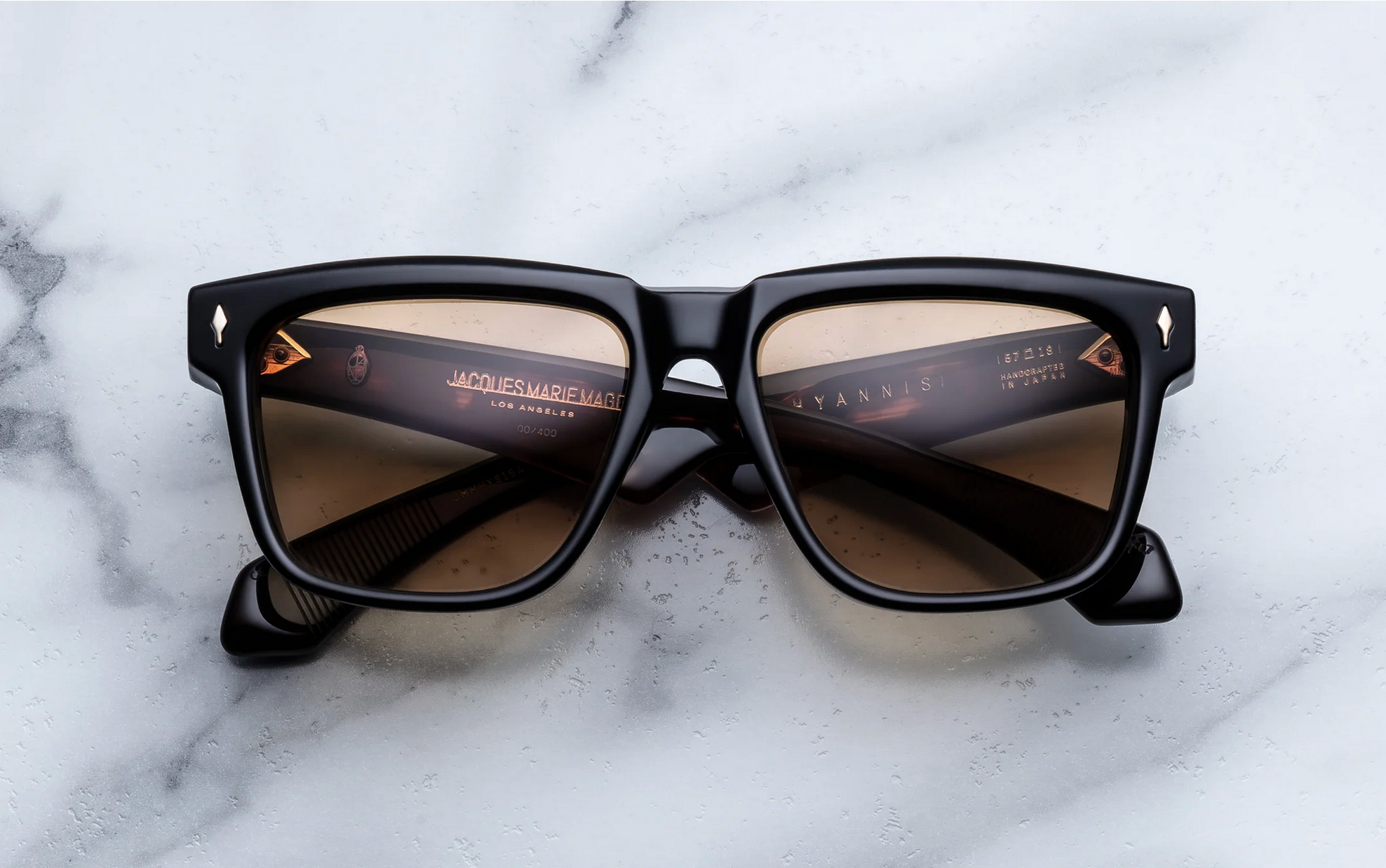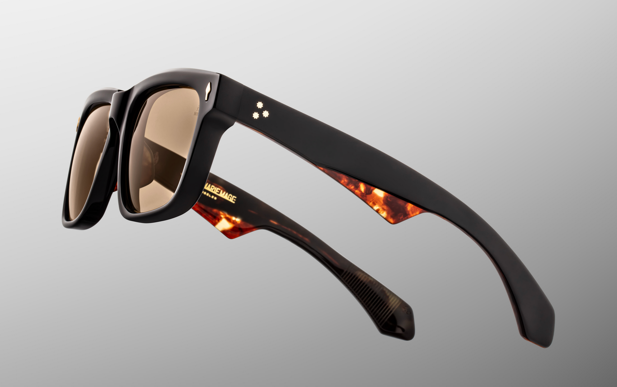 MATERIAL: 10 mm block acetate with custom double laminated acetate temples ft. precious dark gold hardware