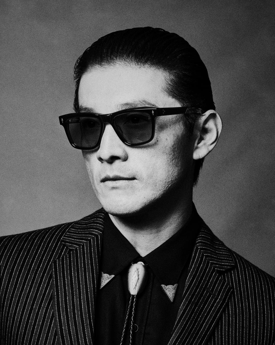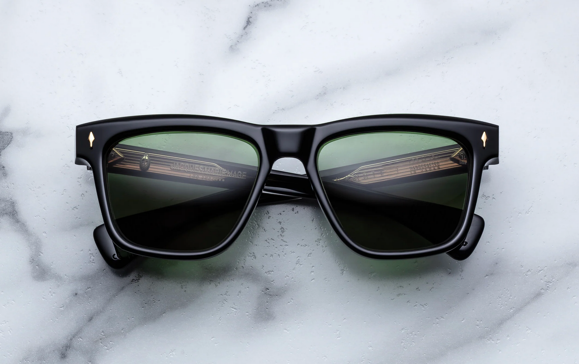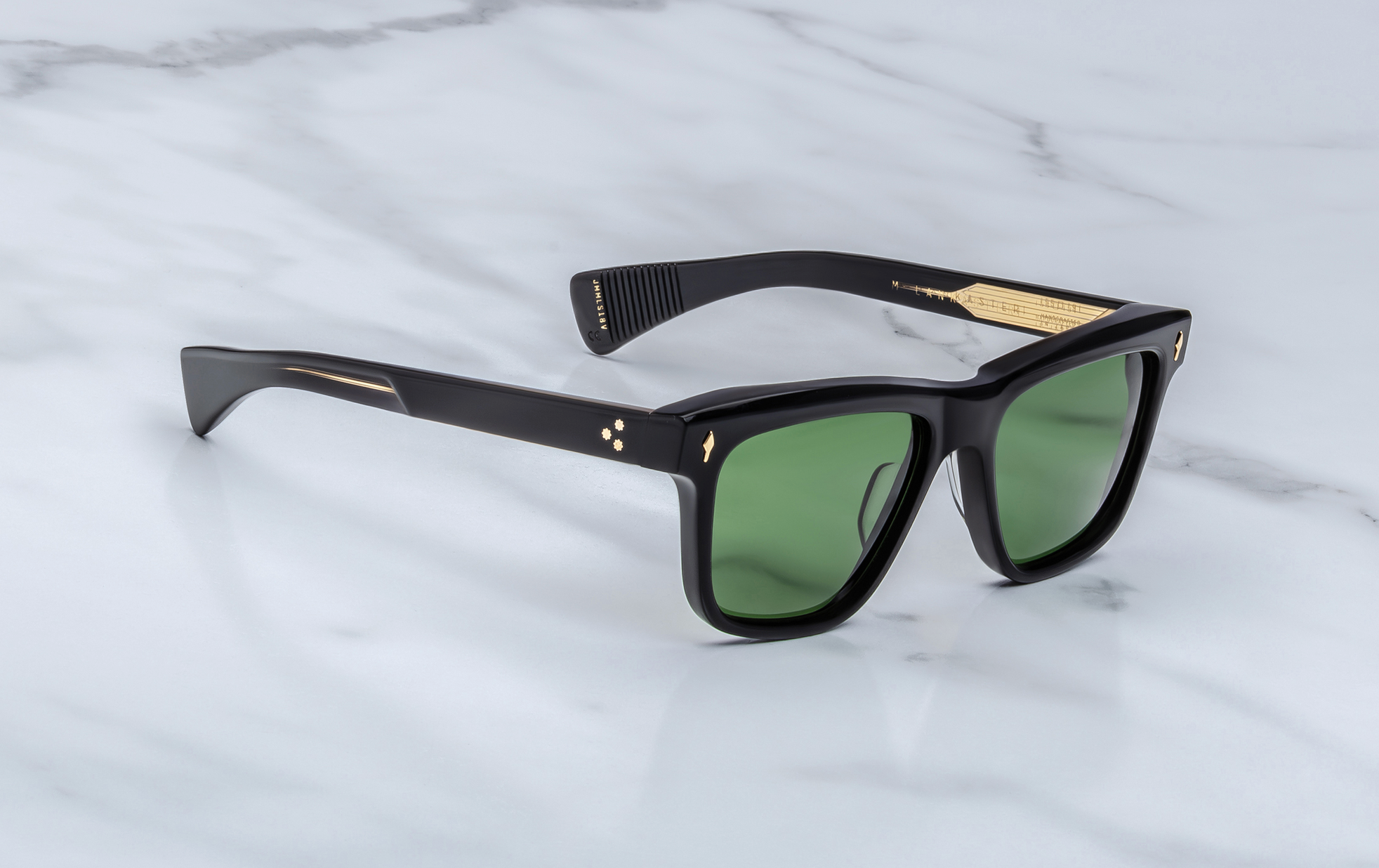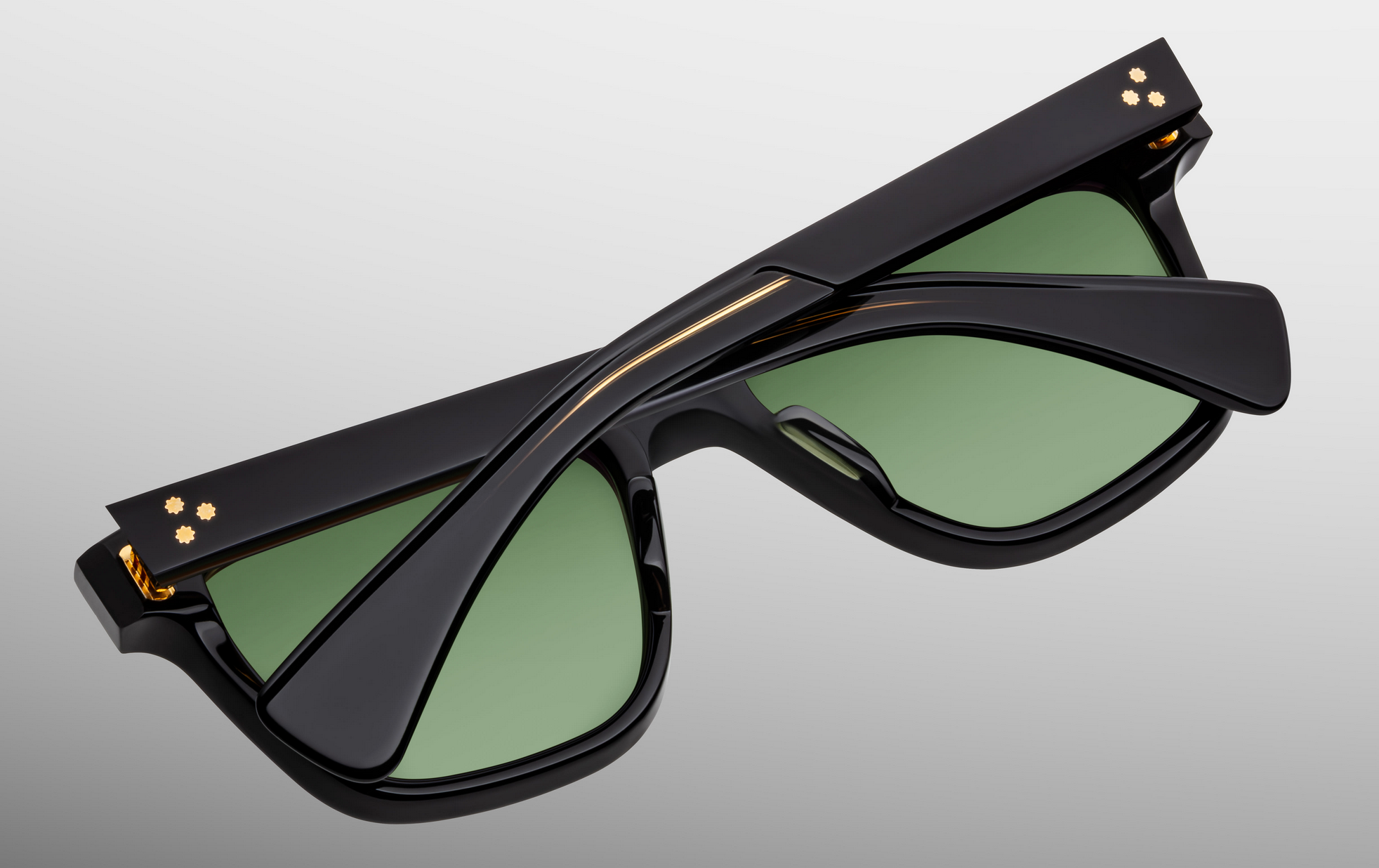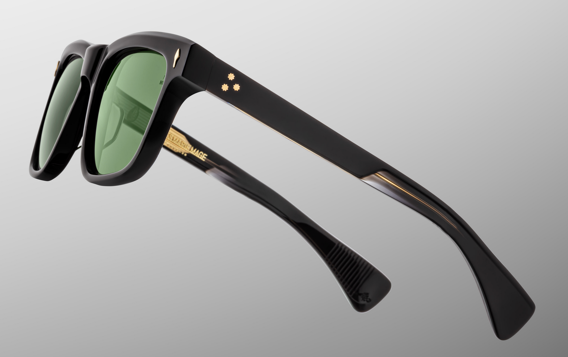 MATERIAL: 10 mm block acetate with custom double laminated acetate temples ft. precious dark gold hardware