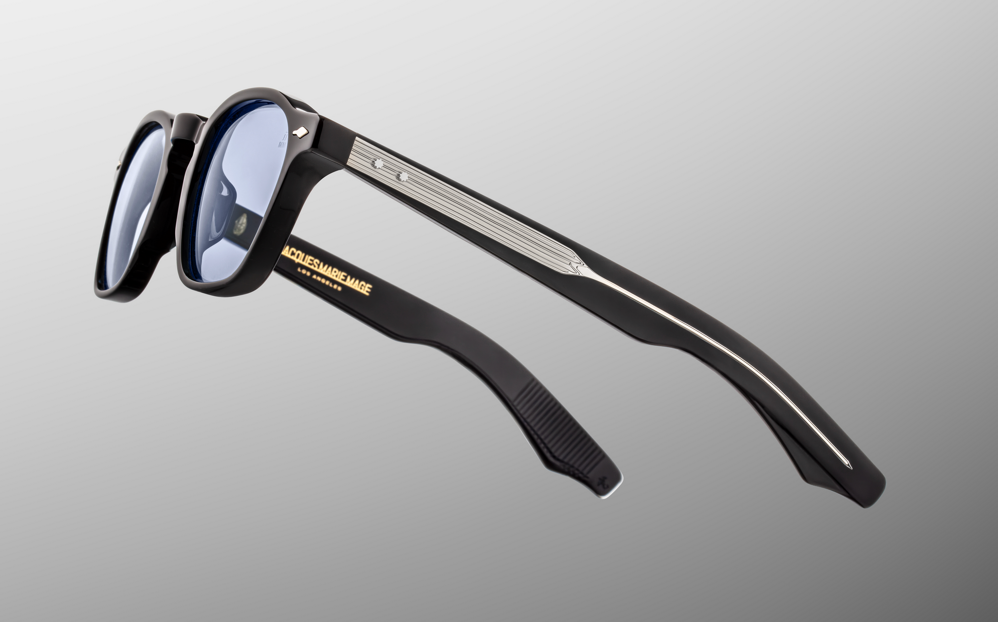 MATERIAL: 10 mm block acetate with custom double laminated acetate temples ft. precioussterling silver metal hardware