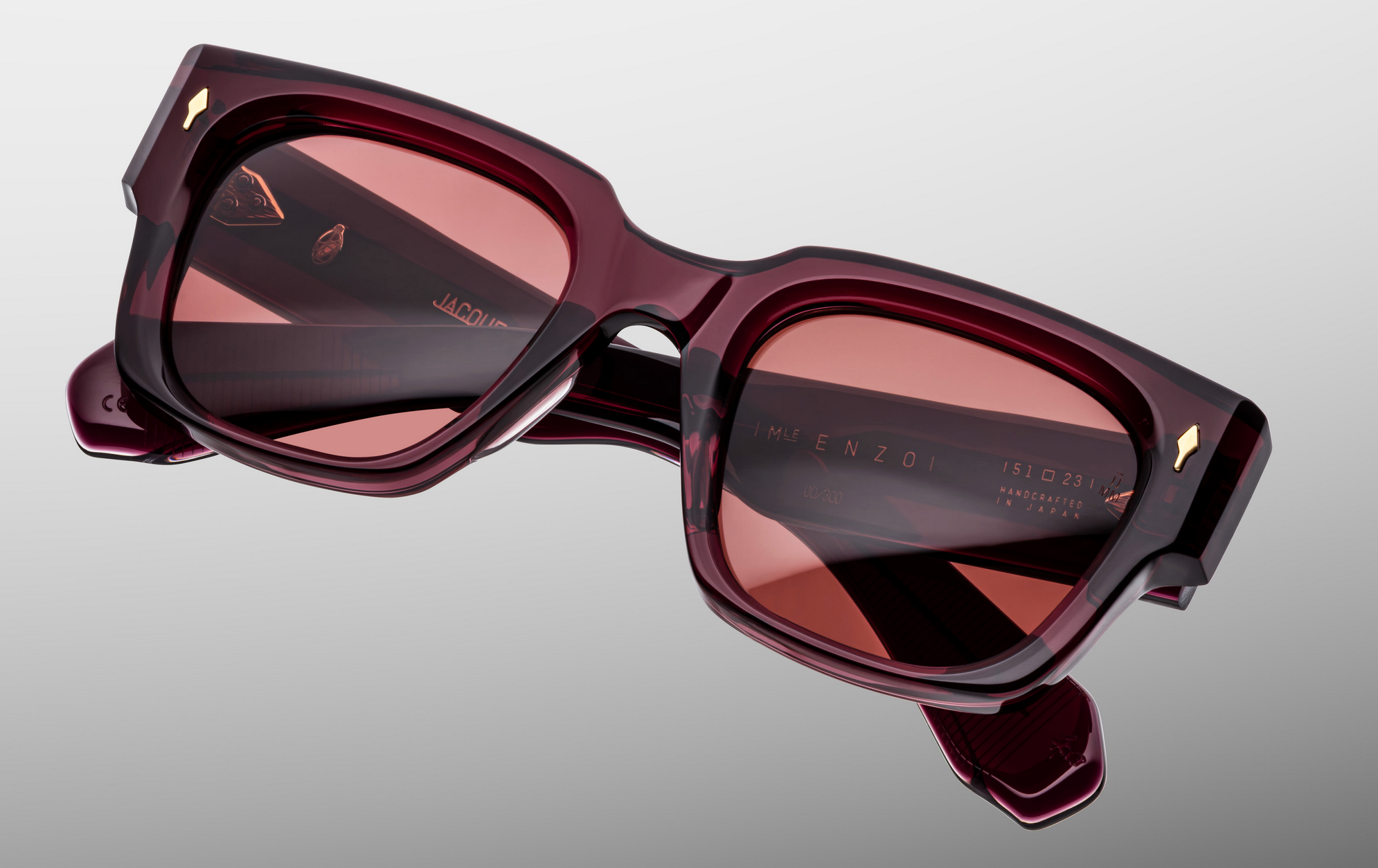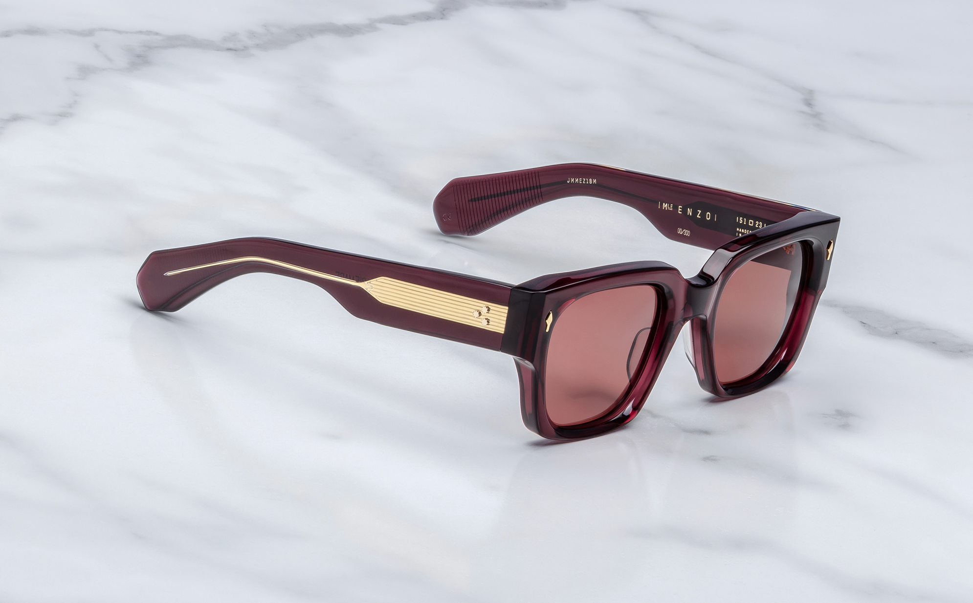 MATERIAL: 10 mm block acetate with custom double laminated acetate temples ft. precious dark gold metal hardware