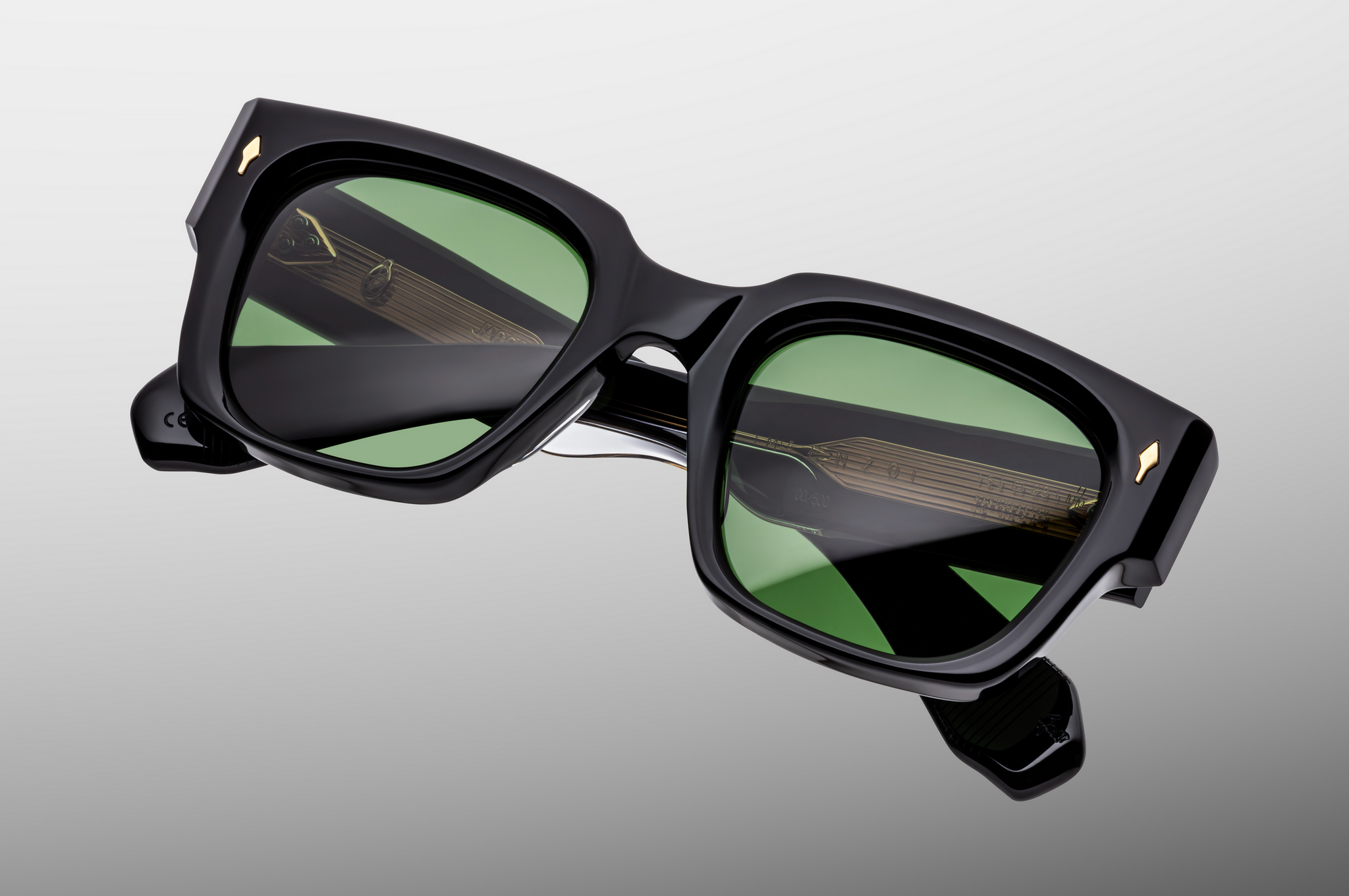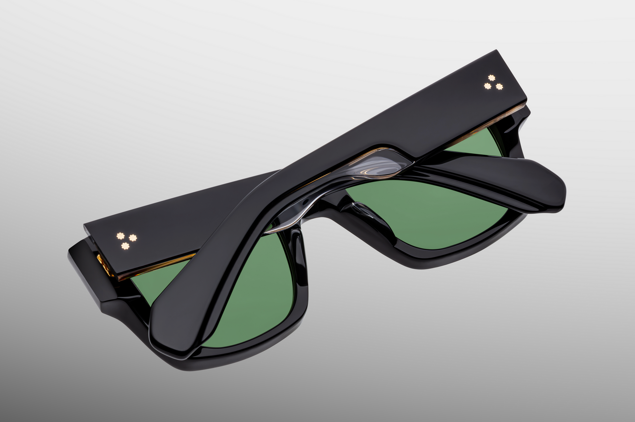 MATERIAL: 10 mm block acetate with custom double laminated acetate temples ft. precious dark gold metal hardware