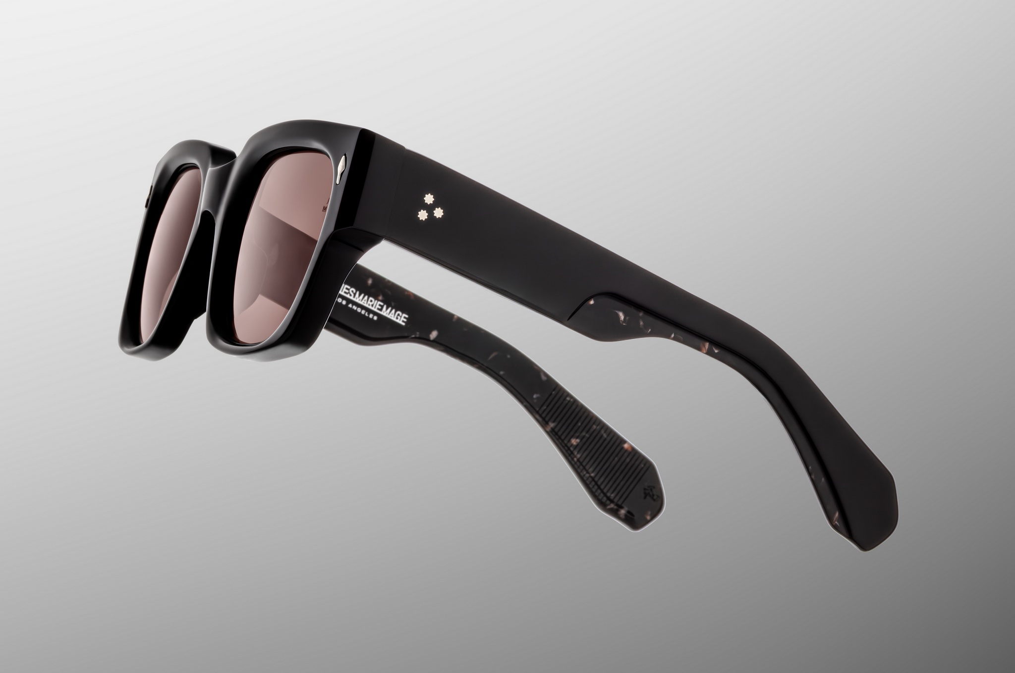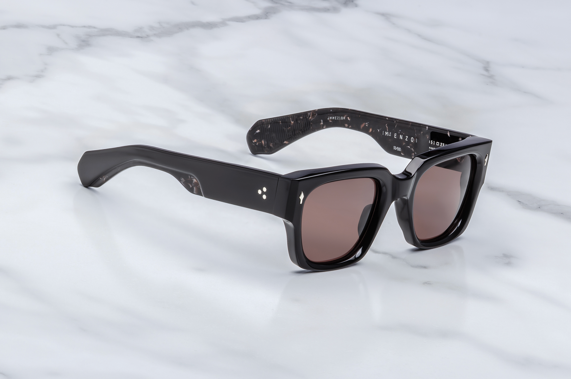 MATERIAL: 10 mm block acetate with custom double laminated acetate temples ft. precious sterling silver metal hardware
