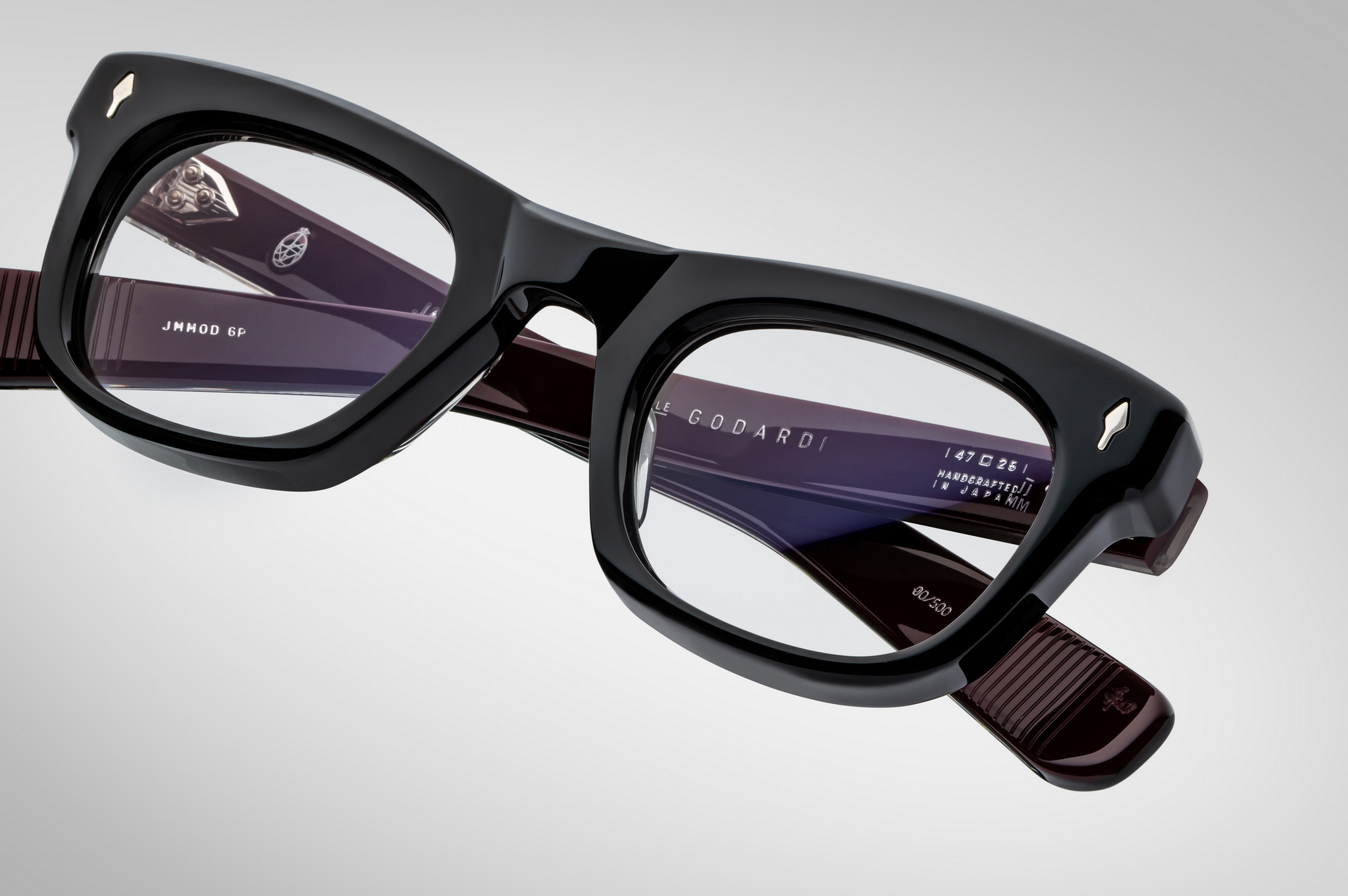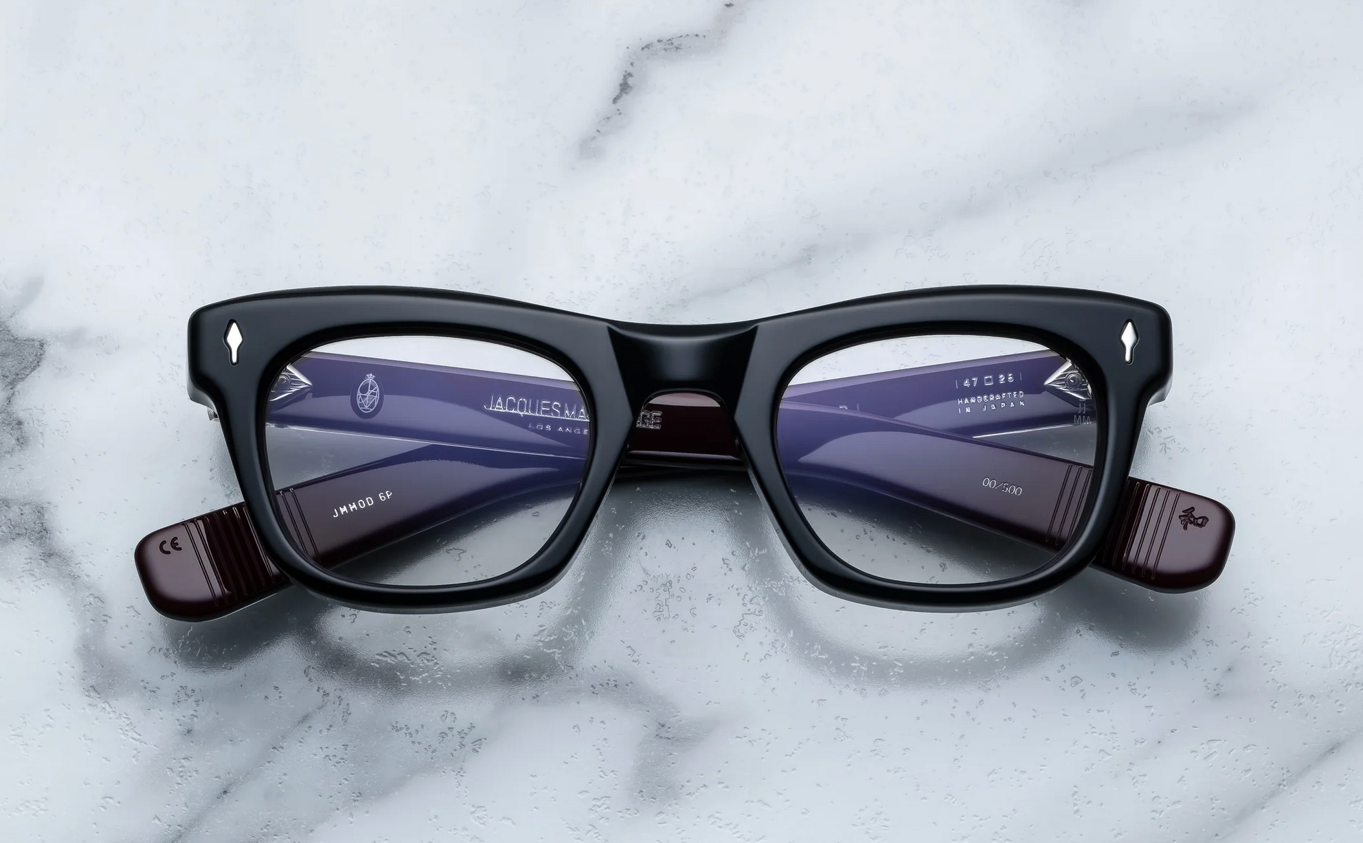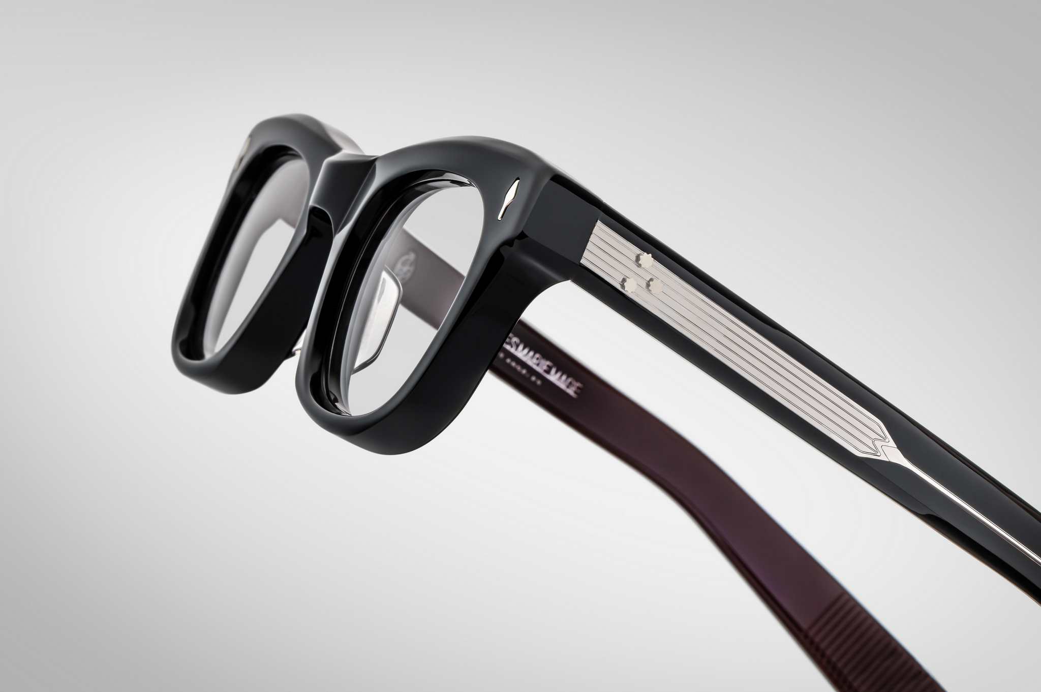 MATERIAL: 10 mm block acetate with custom double laminated acetate temples ft. precious sterling silver hardware