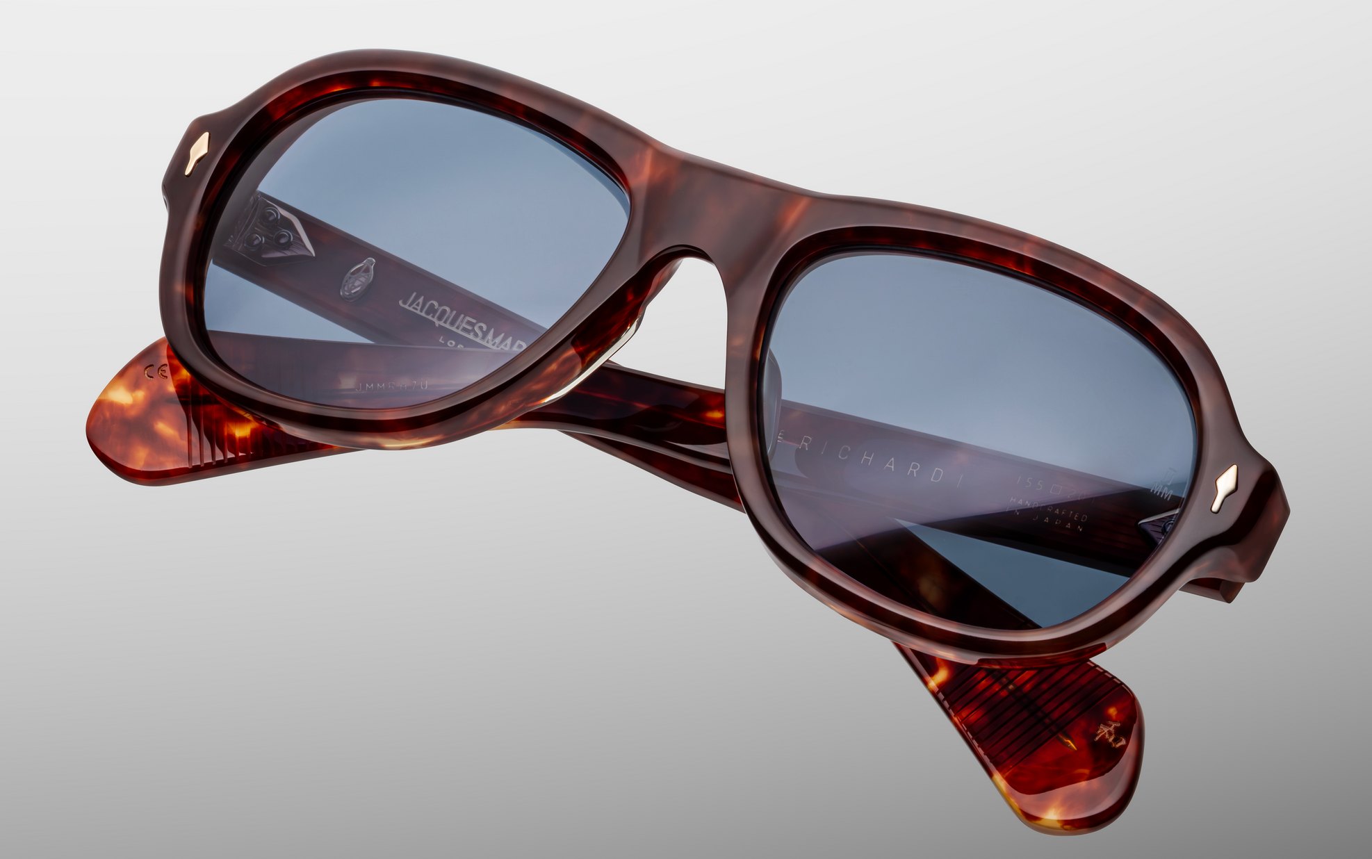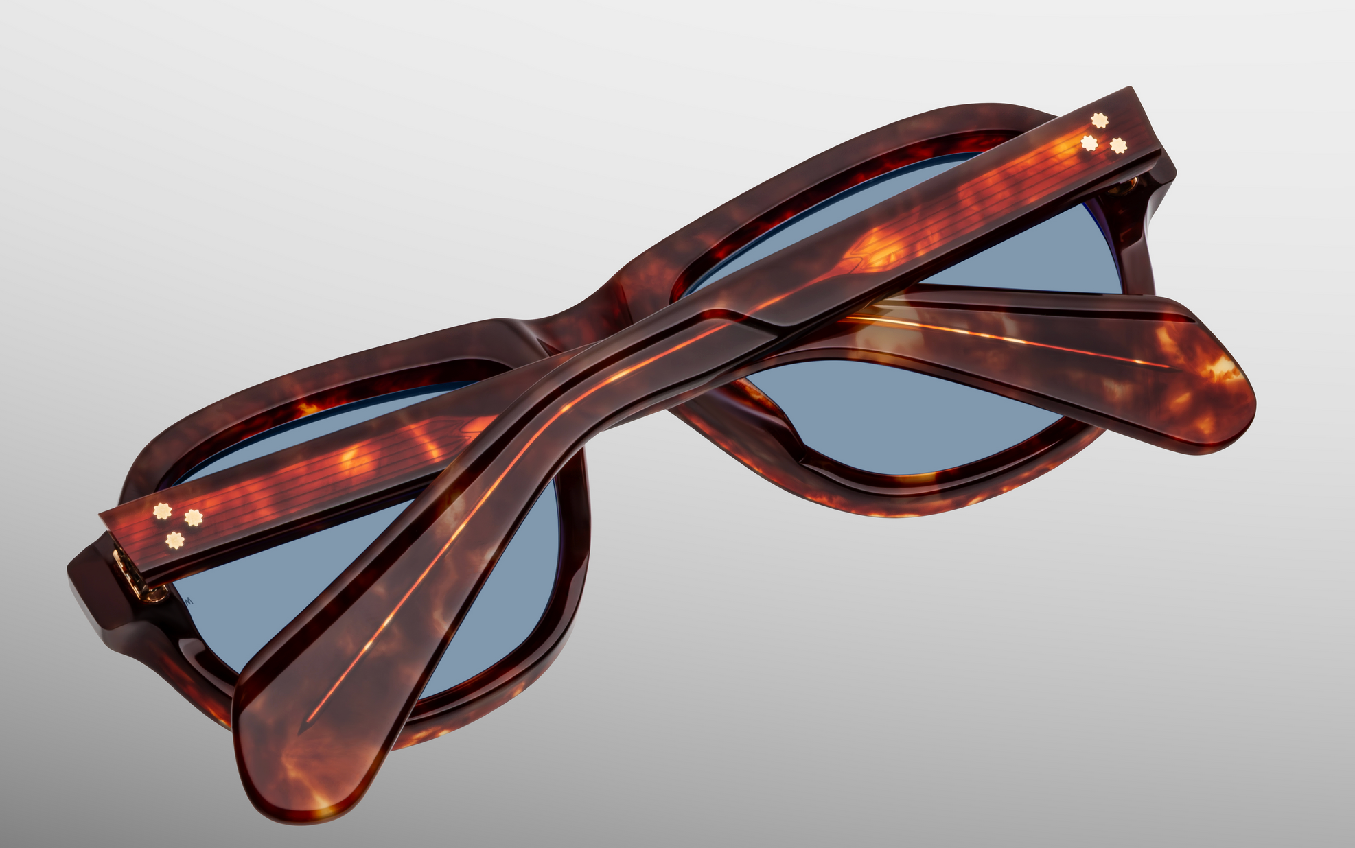 MATERIAL: 10 mm block acetate with custom double laminated acetate temples ft. precious light gold hardware
