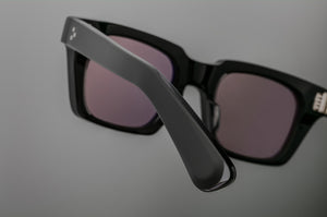 MATERIAL: 10 mm block acetate with custom double laminated acetate temples ft. precious sterling silver hardware